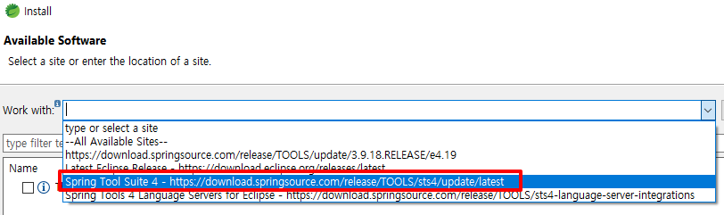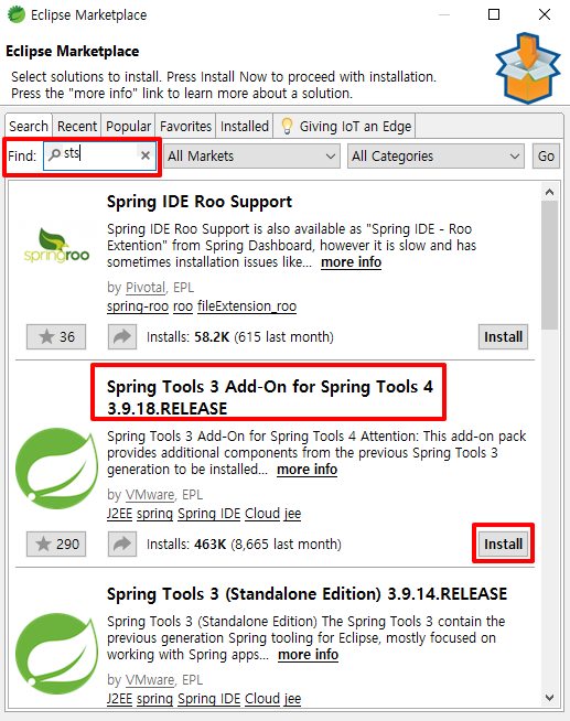Find : sts > Spring Tools 3 Add-On for Spring Tools 4 3.9.18.RELEASE > Install