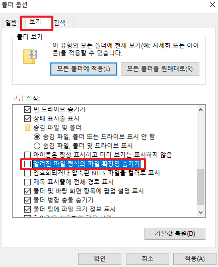 파일 이름 뒤 확장자 표시