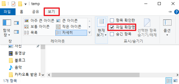 [윈도우10] 파일 확장자 보기/숨기기 본문