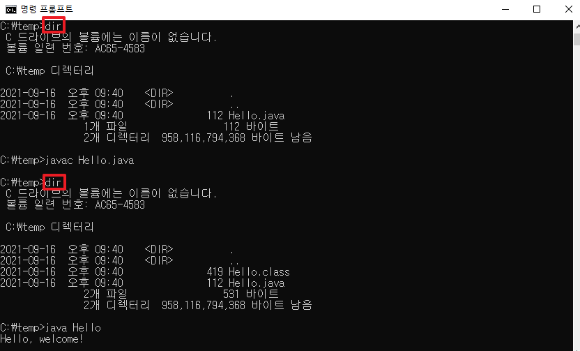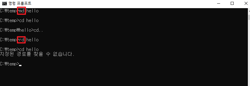 2. 상위 폴더로 이동 : cd..(또는 cd ..)