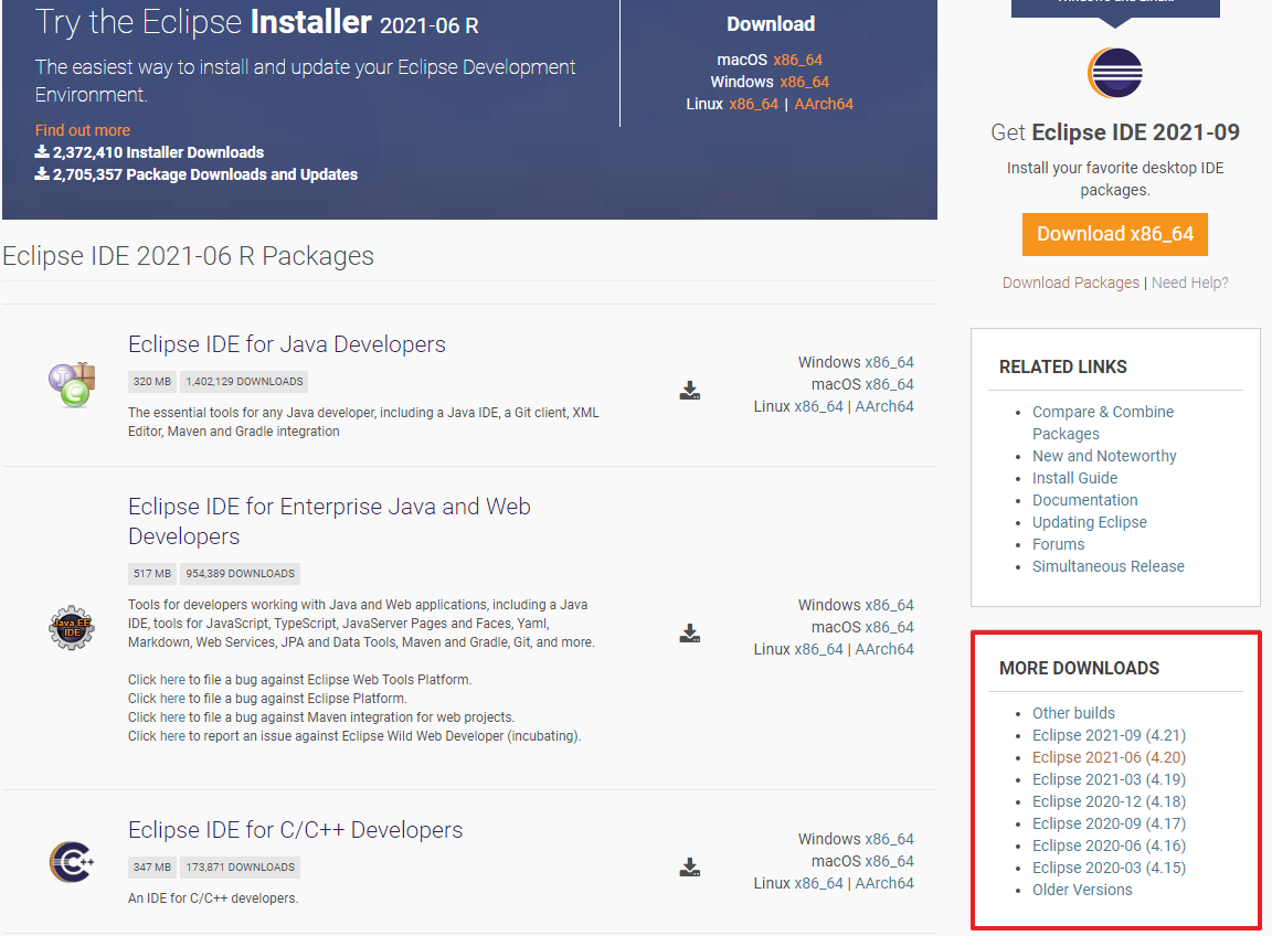 화면 우측 "MORE DOWNLOADS" > 원하는 버전을 클릭