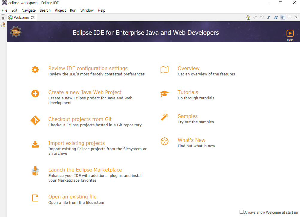 자바로 웹을 개발하기 위해서는 "Eclipse IDE for Enterprise Java Developers" 가 필요