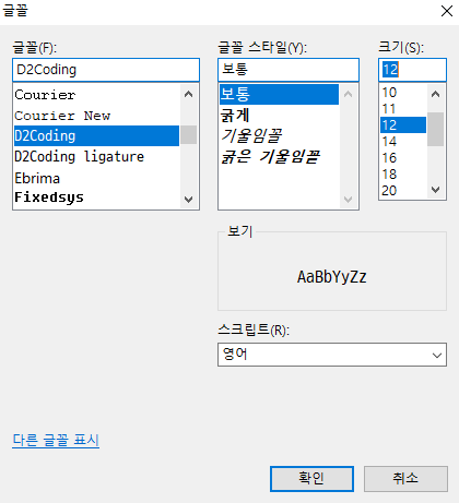 원하는 글꼴, 글꼴 스타일, 크기를 설정